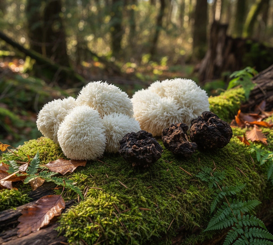 Lions mane is traditionally used for mood, focus and memory Chaga has been centuries used for immune, gut health, skin benefits.