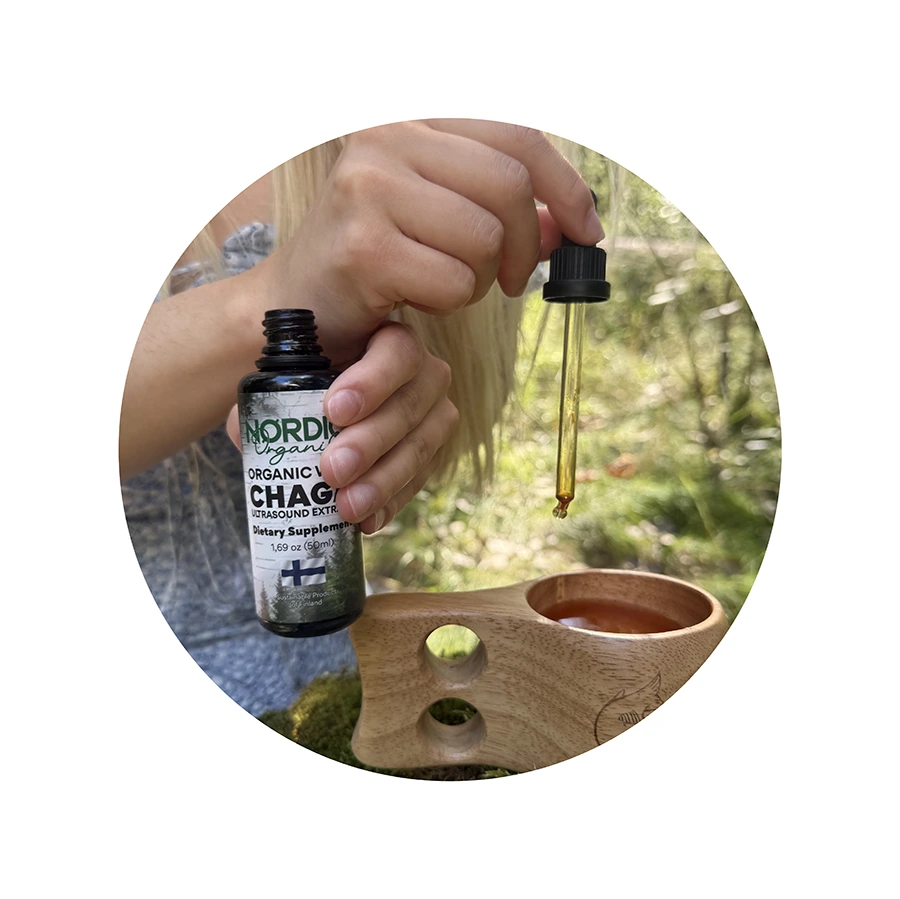 We use wild picked chaga from northern Finland and Turkey tail grown organically in Finland and Northern Europe. All our products are EU and USDA organic. We don’t source Chinese raw material ever.