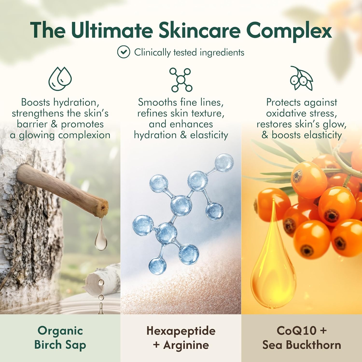 - Regenerative organic certified birch sap - a nutrient-rich elixir known for its anti-aging benefits