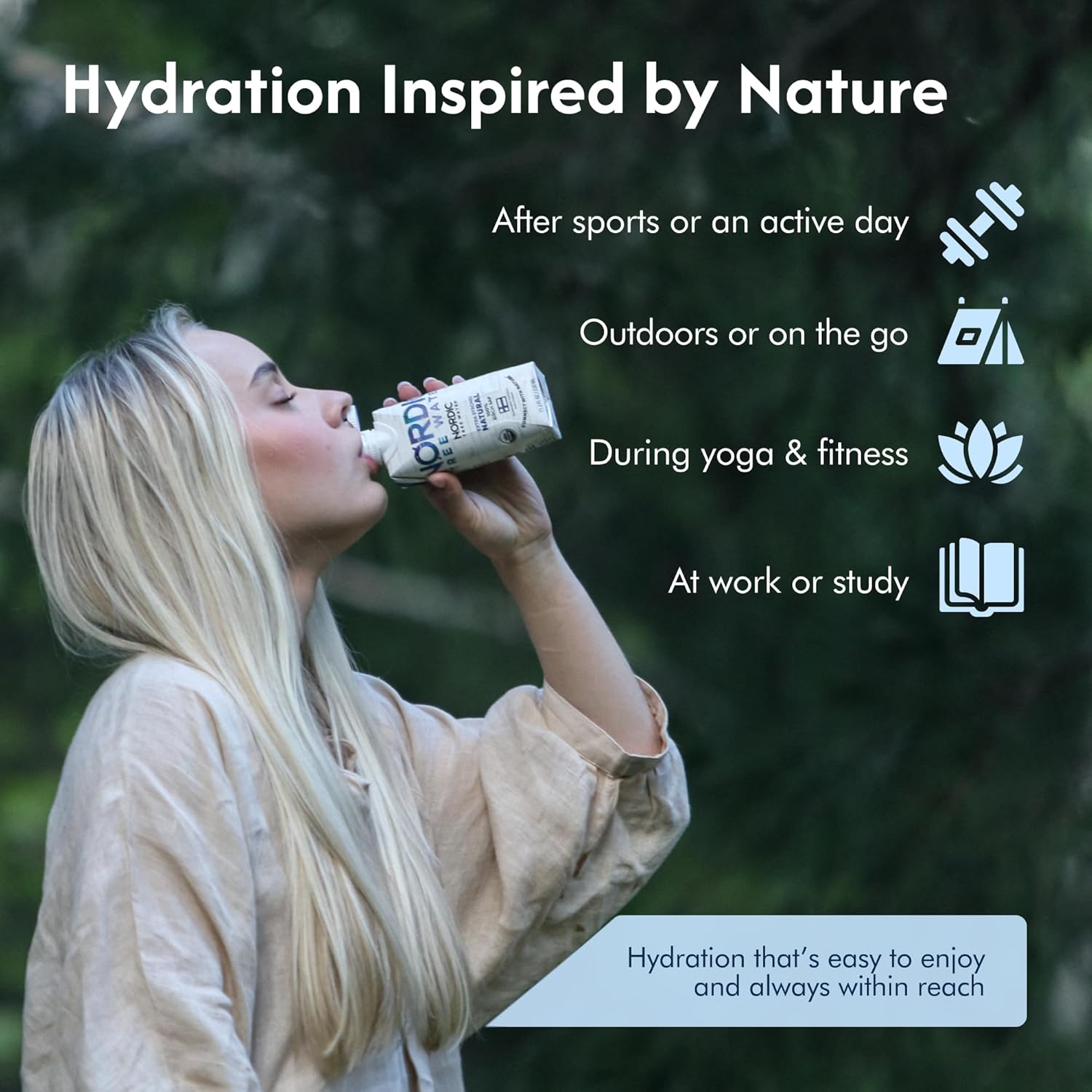 Birch sap is a perfect everyday beverage. Traditionally, use is morning on an empty stomach for its possible detoxifying properties. Nordic is great for workouts and general hydration. It offers hundreds of nutrients that plain water doesn't have and is much fewer calories than coconut water, with anything else added.
