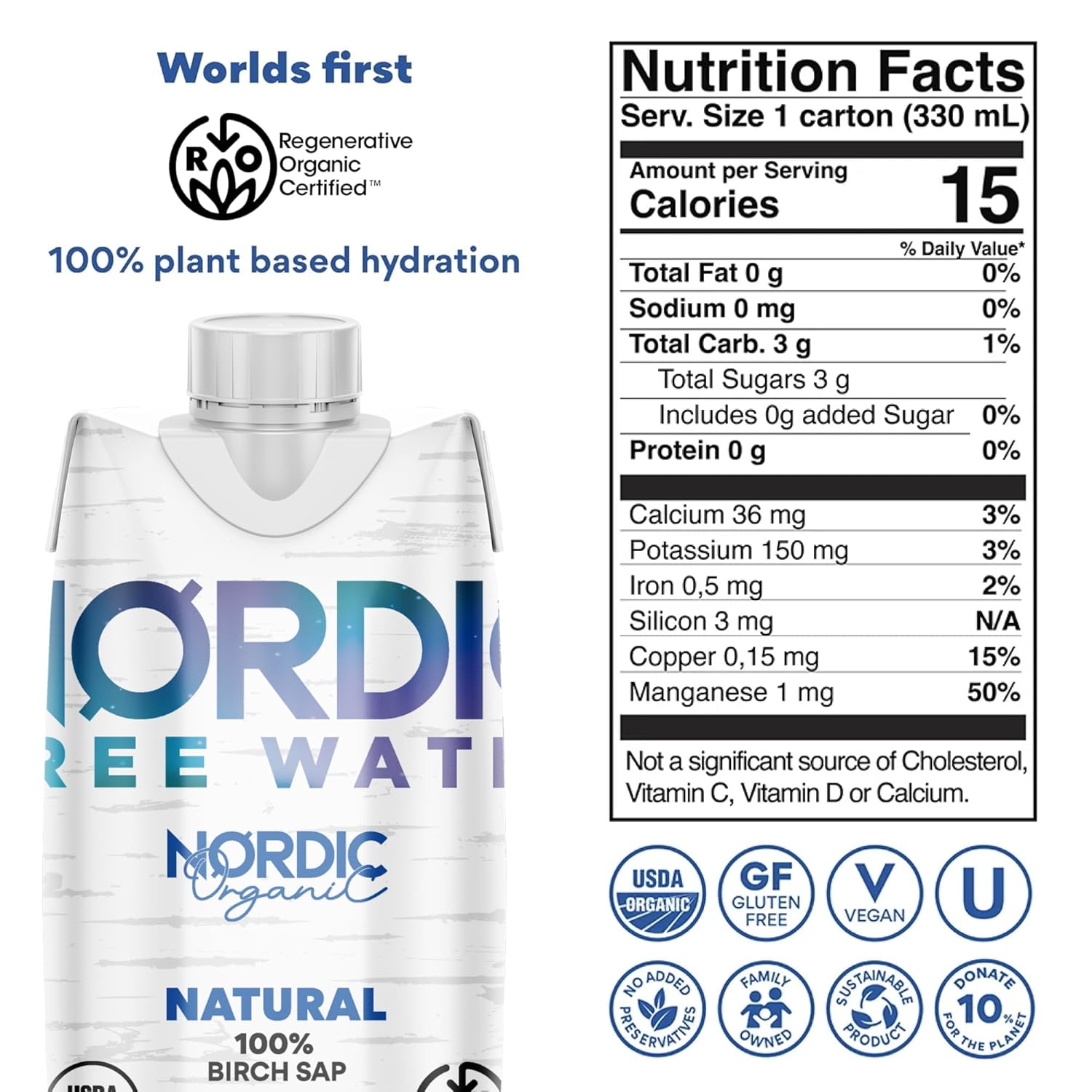 Regenerative Organic Certified™ Birch Tree Sap – Electrolytes, Minerals, Prebiotics & Vitamins, Finland Wild Harvested, BPA-Free Tetra Pak, Nature’s Perfect Hydration, Lower Calorie than Coconut Water